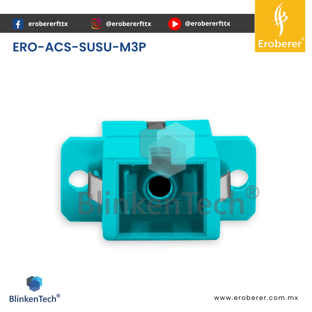 ERO-ACS-SUSU-M3P El ACOPLADOR SC/UPC Simplex Multimodo OM3 y OM4 Modelo ACS-SUSU-M3P de plástico está diseñado para interconectar fibras multimodo de manera precisa y estable. Gracias a su construcción ligera y resistente, garantiza una alineación adecuada de los conectores y una baja pérdida de inserción, siendo ideal para redes de alta velocidad y entornos exigentes como centros de datos o cableado estructurado.