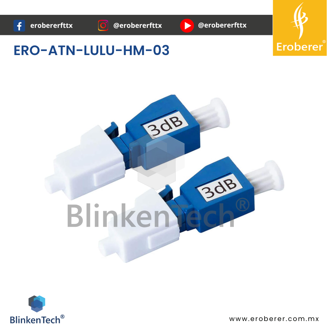 ERO-ATN-LULU-HM-03 El ATENUADOR LULU-HM-03 es un componente ideal para redes de telecomunicaciones donde se necesite realizar cambios en la señal óptica. Con su gran diseño y estructura es de utilidad para todo tipo de redes, siendo ideal en situaciones donde se necesite realizar un ajuste en la atenuación para evitar daños en dispositivos por fuerte señal óptica o por saturación.
