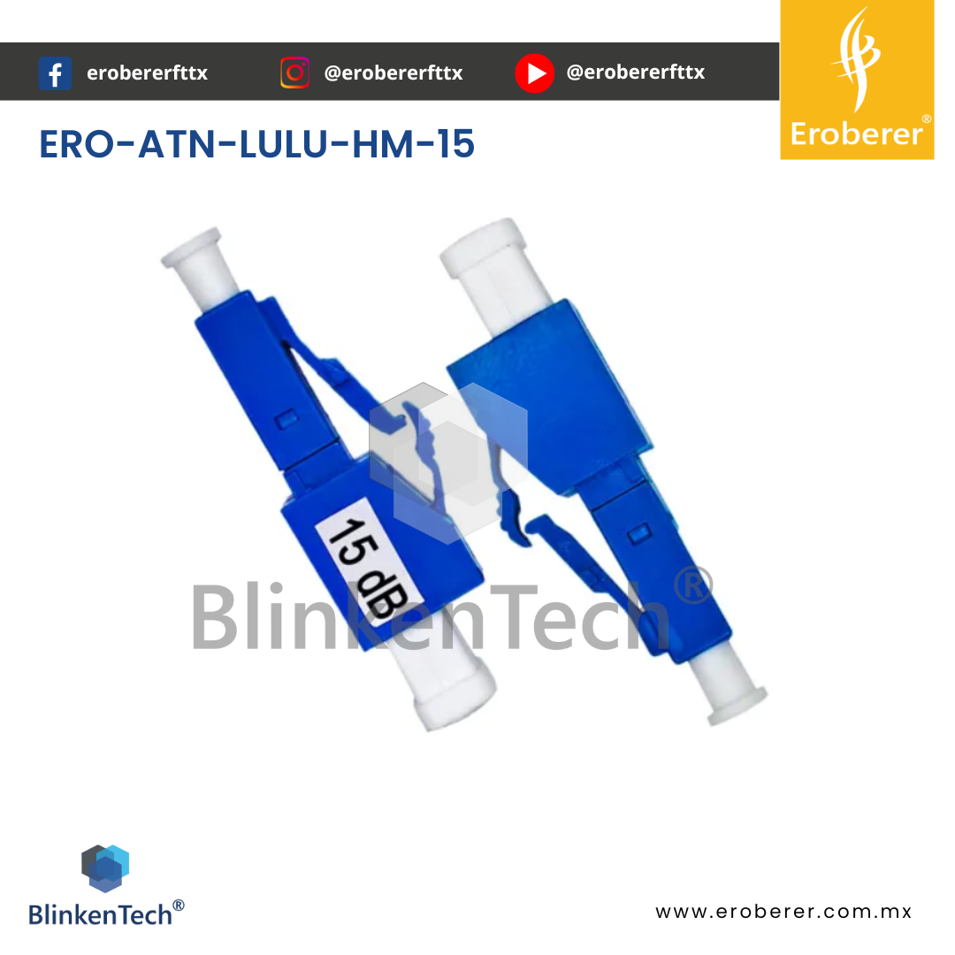 ERO-ATN-LULU-HM-15 El ATENUADOR LULU-HM-15 es un componente ideal para redes de telecomunicaciones donde se necesite realizar cambios en la señal óptica. Con su gran diseño y estructura es de utilidad para todo tipo de redes, siendo ideal en situaciones donde se necesite realizar un ajuste en la atenuación para evitar daños en dispositivos por fuerte señal óptica o por saturación.