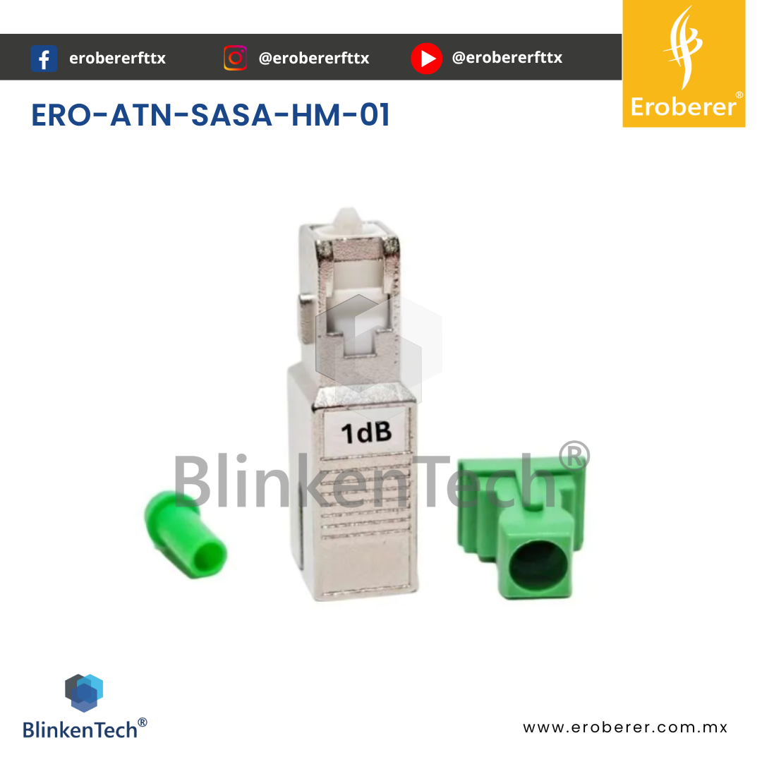 ERO-ATN-SASA-HM-01 El ATENUADOR SASA-HM-1 es un componente ideal para redes de telecomunicaciones donde se necesite realizar cambios en la señal óptica. Con su gran diseño y estructura es de utilidad para todo tipo de redes, siendo ideal en situaciones donde se necesite realizar un ajuste en la atenuación para evitar daños en dispositivos por fuerte señal óptica o por saturación.