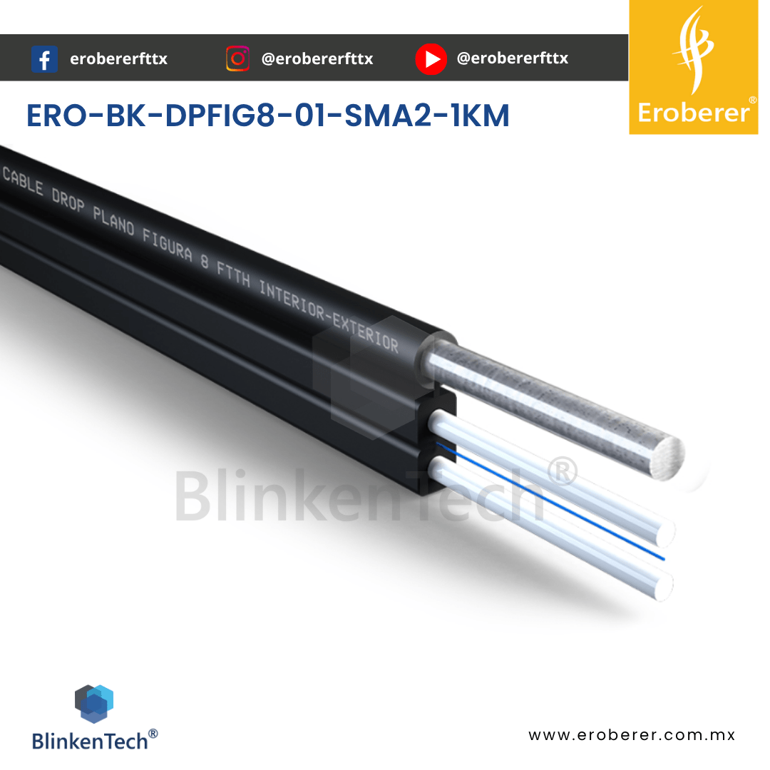 ERO-BK-DPFIG8-01-SMA2-1KM el CABLE DROP FIG.8 1-KM es uno de los productos con mayor demanda en los últimos años, siendo ampliamente utilizado desde las cajas de empalme hasta usuarios finales, usado para tendidos aéreos e instalaciones de planta interna es una de las mejores opciones en cuanto a material e instalación. El cable drop permite resistir los rayos UV gracias a su protección con cubierta de LSZH. Su estructura es centralizada por un núcleo capaz de soportar hasta 4 fibras, garantizando bajos niveles de perdida en las curvas o evitando su quiebre en la instalación o durante la manipulación.