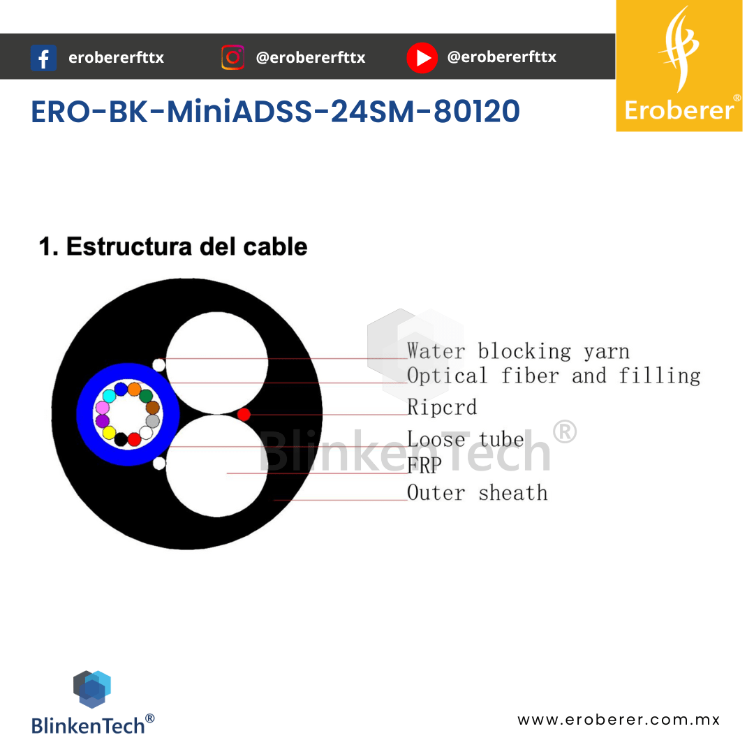 CABLE MINI ADSS 24FO | 120M – 2000N – 4KM | BlinkTech