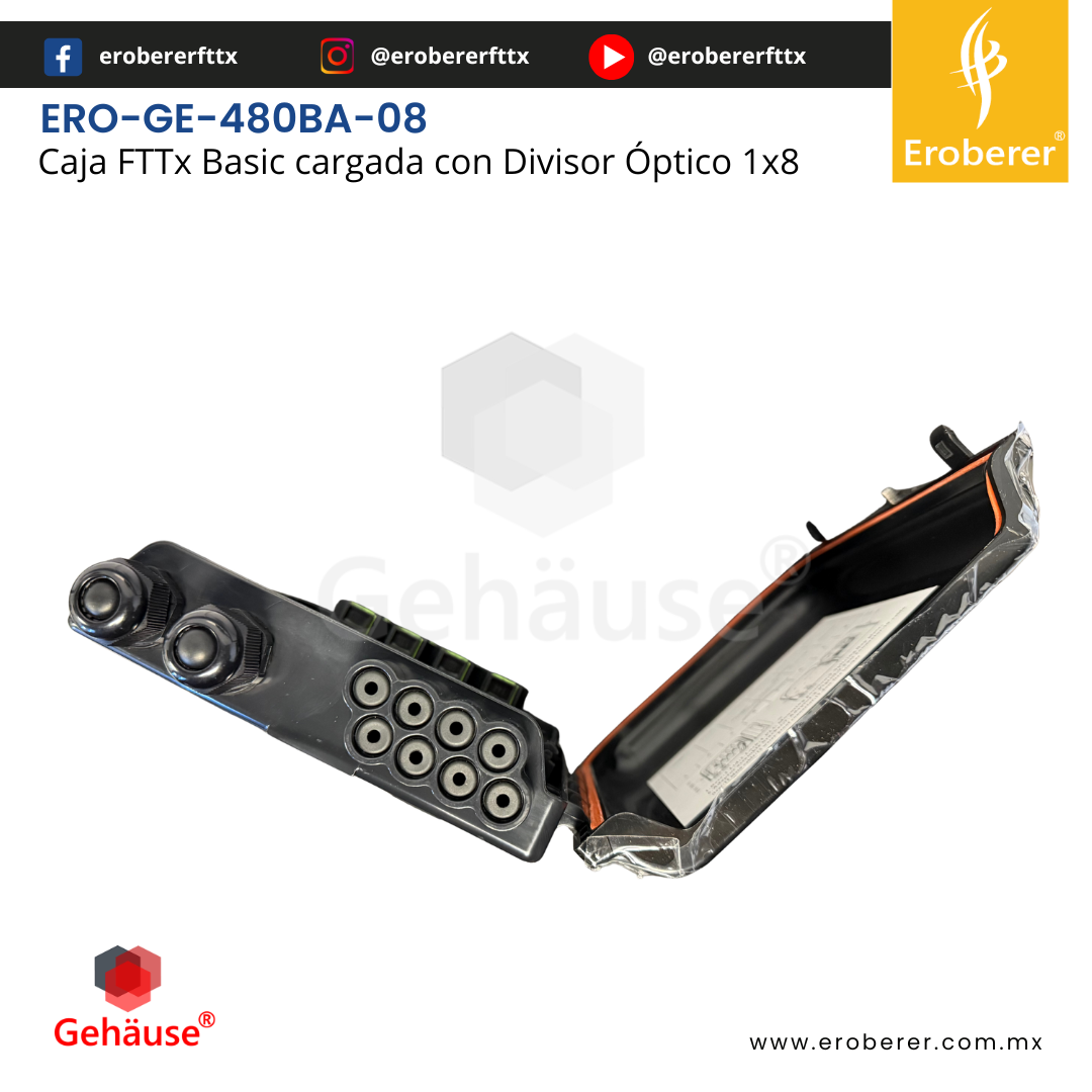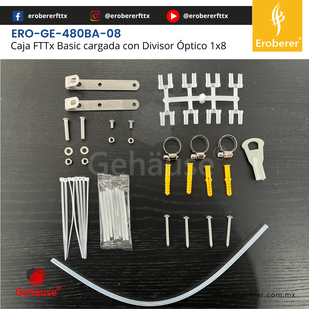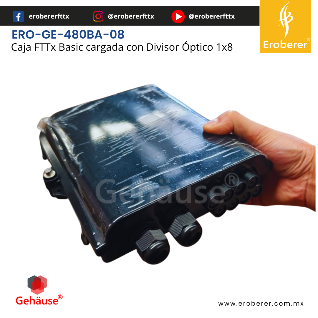 ERO-GE-480BA-08 es una CAJA NAP FTTx de la linea Basica pensada para ser la mejor opción para la terminación de la red FTTx ya que integra opciones en la caja para realizar empalmes, división y cableado de fibra para terminación hacia usuarios.