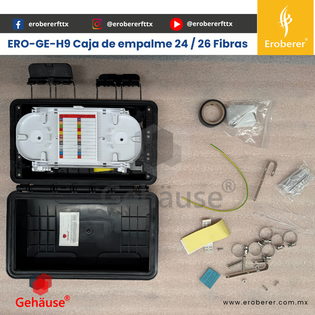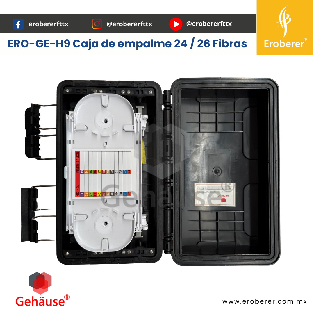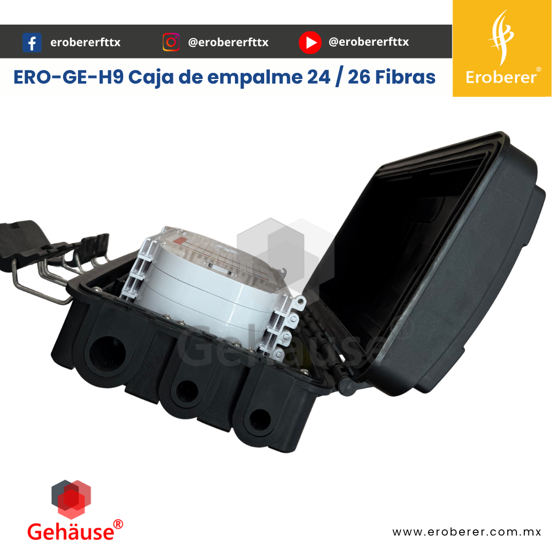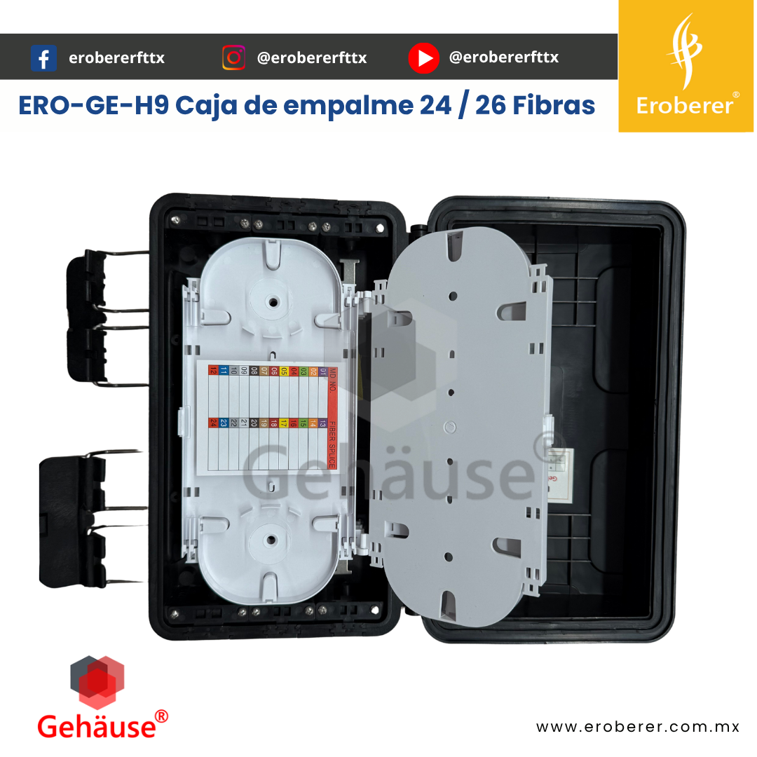 ERO-GE-H9 La CAJA DE EMPALME H9 es una buena opción para la conectividad de fibra óptica, proporcionando una solución confiable con un gran rendimiento. Esta caja es ideal para el despliegue de redes de fibra óptica con una gestión de fibra de alta calidad y sin complicaciones. Gracias a su estructura hecha con los mejores materiales y espacios adecuados para su uso en empalmes permite generar una gran cantidad de 96 empalmes dentro de ella con múltiples espacios para el acomode de los mismos.