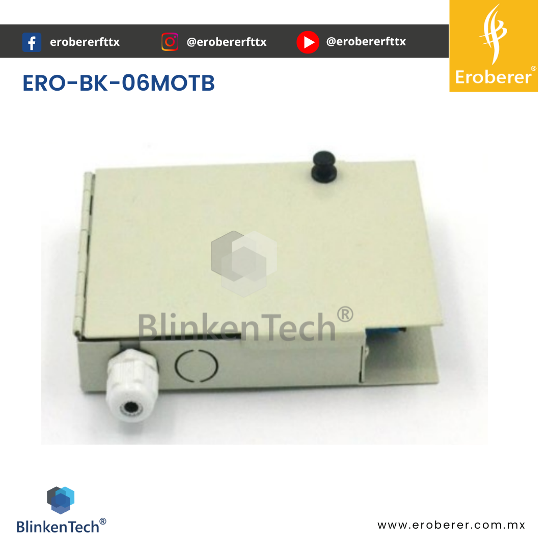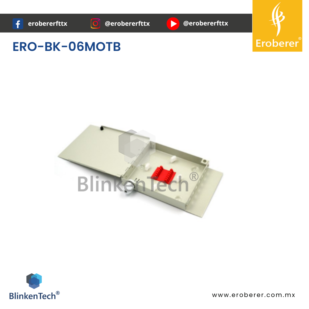 ERO-BK-06MOTB EL Distribuidor Terminal de Fibra 06-MOTB está especialmente diseñada para terminaciones finales en instalaciones FTTH dentro de edificios residenciales, villas y entornos similares. Su estructura resistente y su diseño compacto hacen de esta unidad una solución práctica para despliegues de redes de acceso óptico.