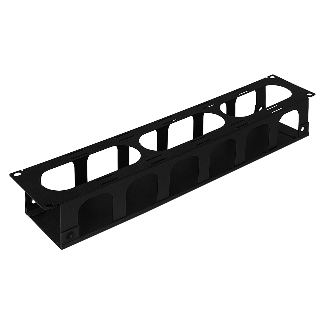 ERO-KA-K10213 El ORGANIZADOR K10213 ofrece mayor capacidad que un modelo de 1UR gracias a su diseño de 2UR en formato sencillo. Está construido en lámina de acero calibre 18, con recubrimiento en pintura electrostática negro semimate para resistir el uso constante. Diseñado para racks y gabinetes conforme a la norma EIA-310D, es ideal para guiar, proteger y mantener en orden el cableado, favoreciendo tanto la estética como la funcionalidad en entornos de telecomunicaciones y centros de datos.