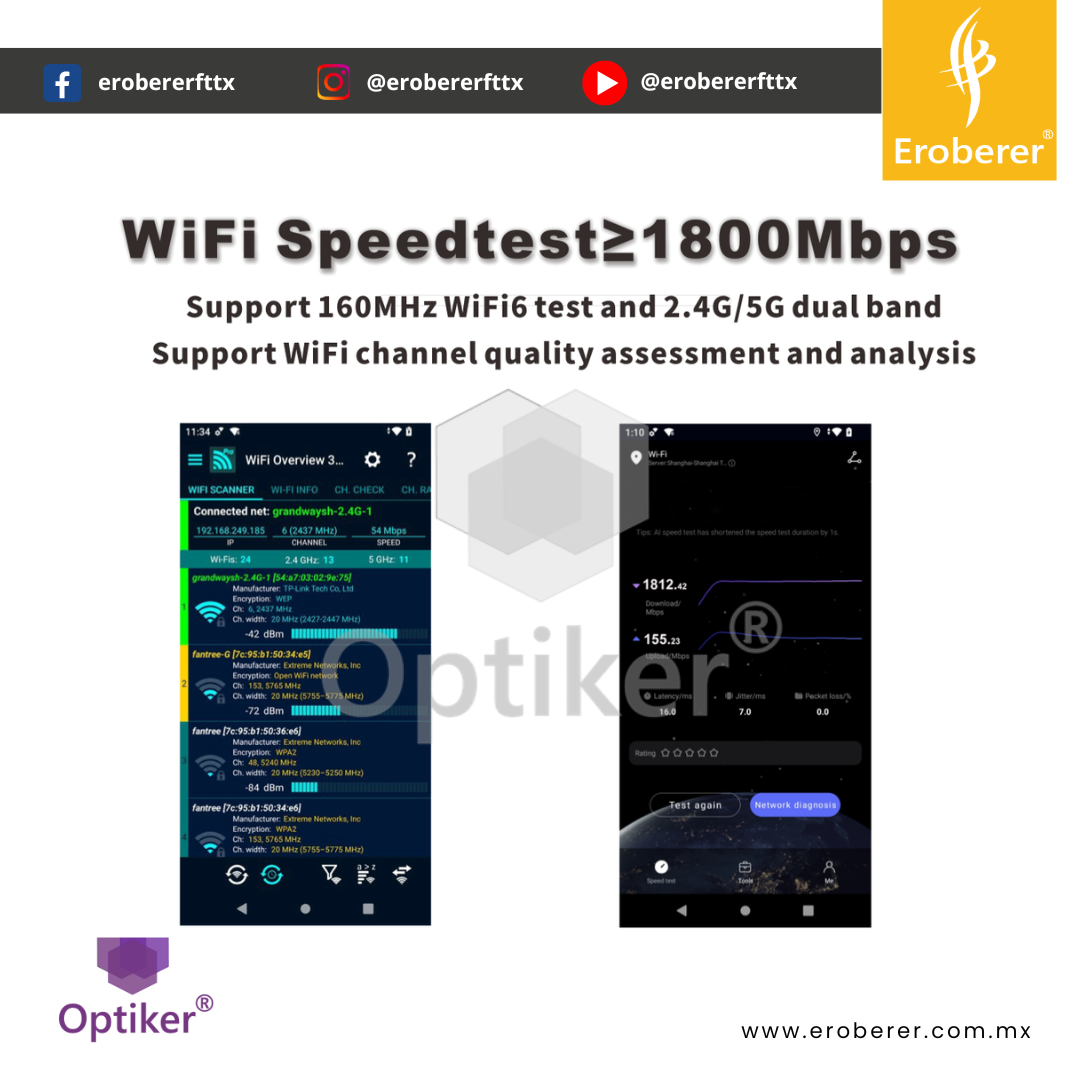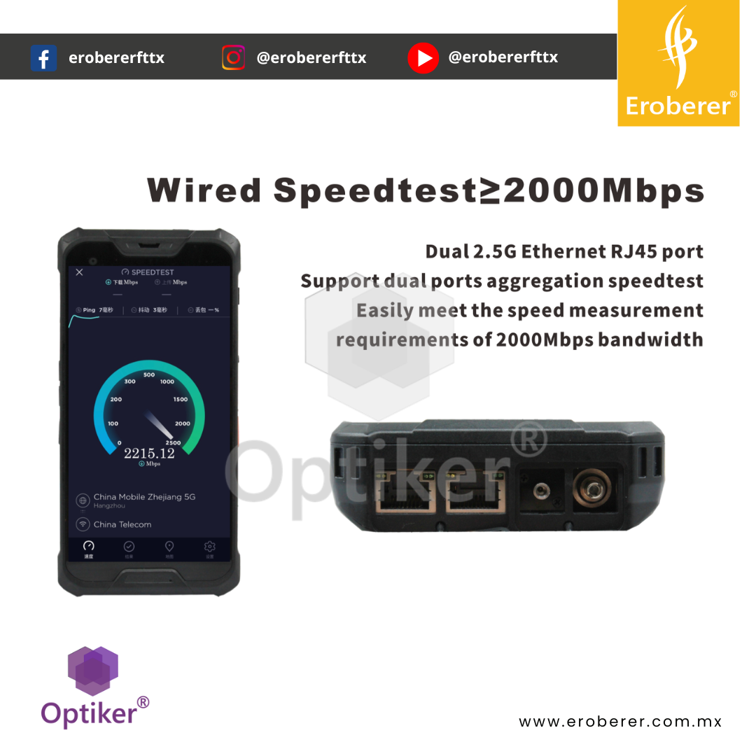 Gracias a sus puertos Ethernet de 2.5G, conectividad WiFi 6 y compatibilidad con módulo OTDR, este equipo se convierte en una herramienta ideal para instalación, mantenimiento y certificación de redes FTTx.