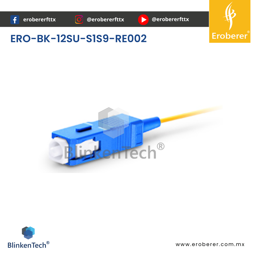 ERO-BK-12SU-S1S9-RE002 El SET DE 12 PIGTAIL SC OS2 12SU-S1S9-RE002 es una solución práctica, duradera y eficiente para proyectos de empalme por fusión y distribución óptica.
