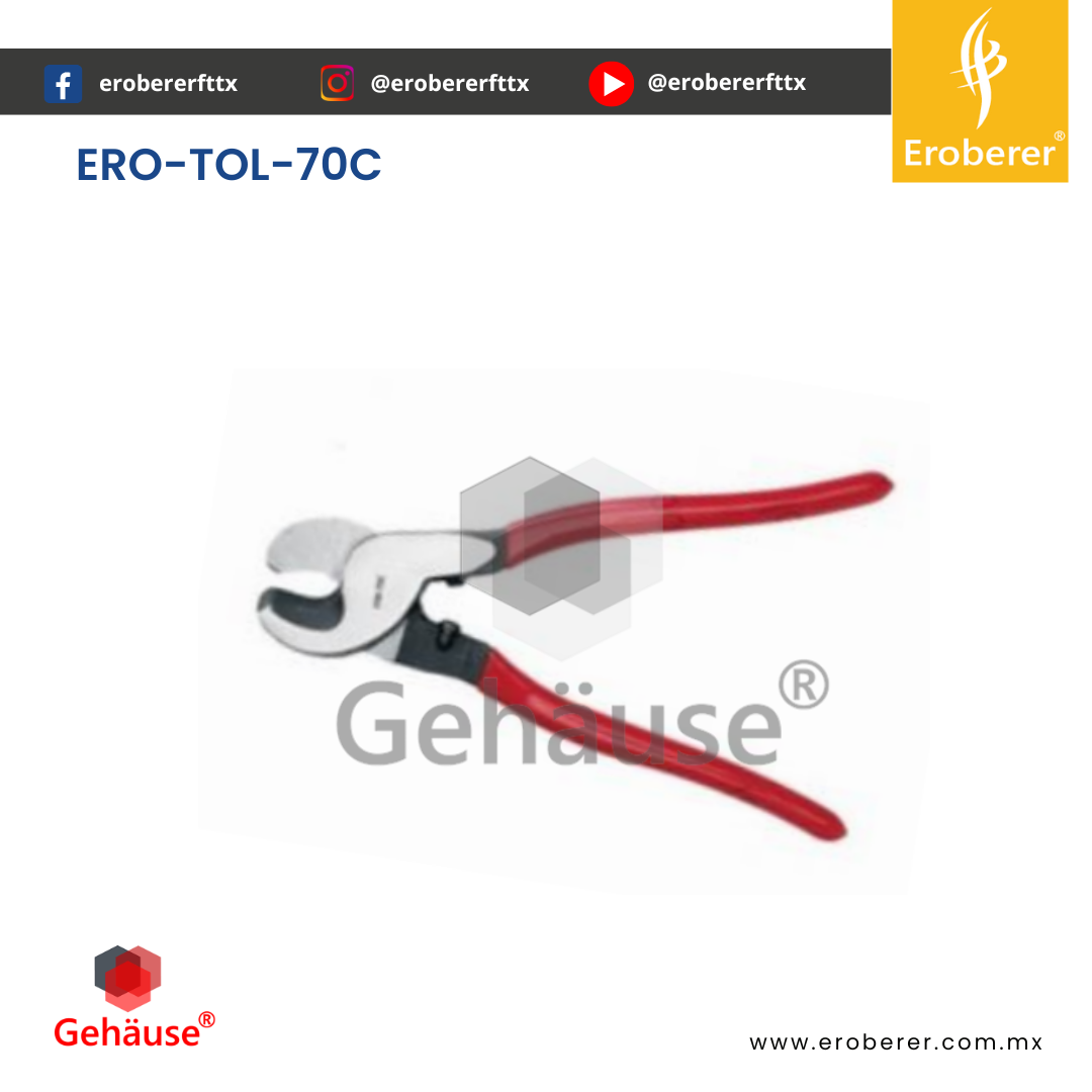 ERO-TOL-70C La PINZA CORTADORA DE CABLE TOL-70C es una herramienta robusta y utilitaria diseñada para cortar cables de gran diámetro con facilidad. Gracias a sus mangos largos, proporciona una mayor fuerza de corte (apalancamiento), permitiendo cortes eficientes en cables de hasta 70 mm de diámetro sin necesidad de gran esfuerzo físico.